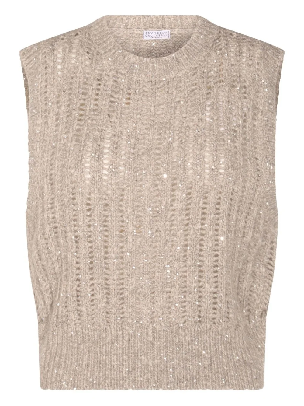 knitted jumper Highlights - Beige - Crew neck - Sleeveless - Sequin embellishment Made in Italy Composition Fabric 100%