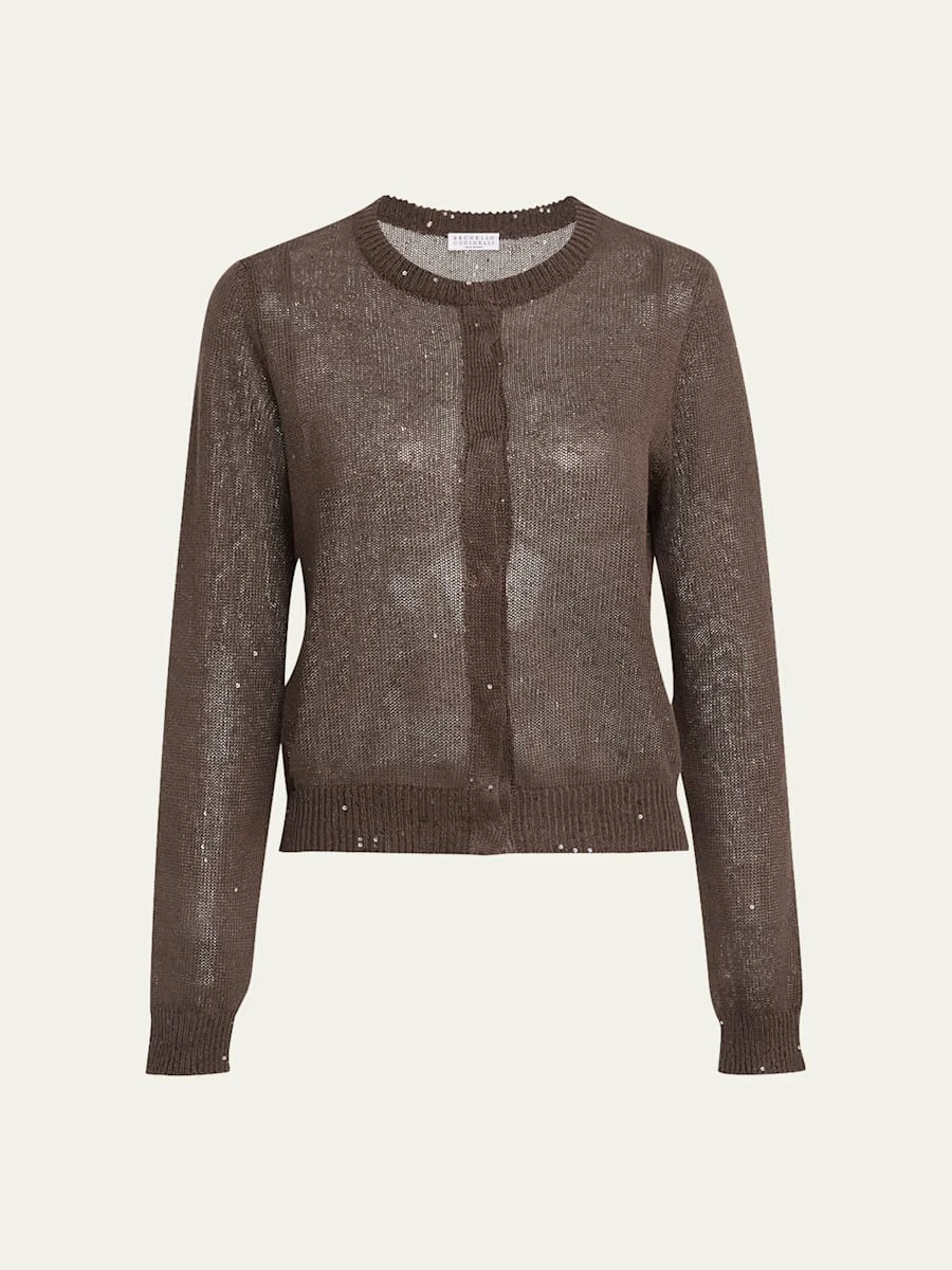 Linen Paillette Crewneck Cardigan