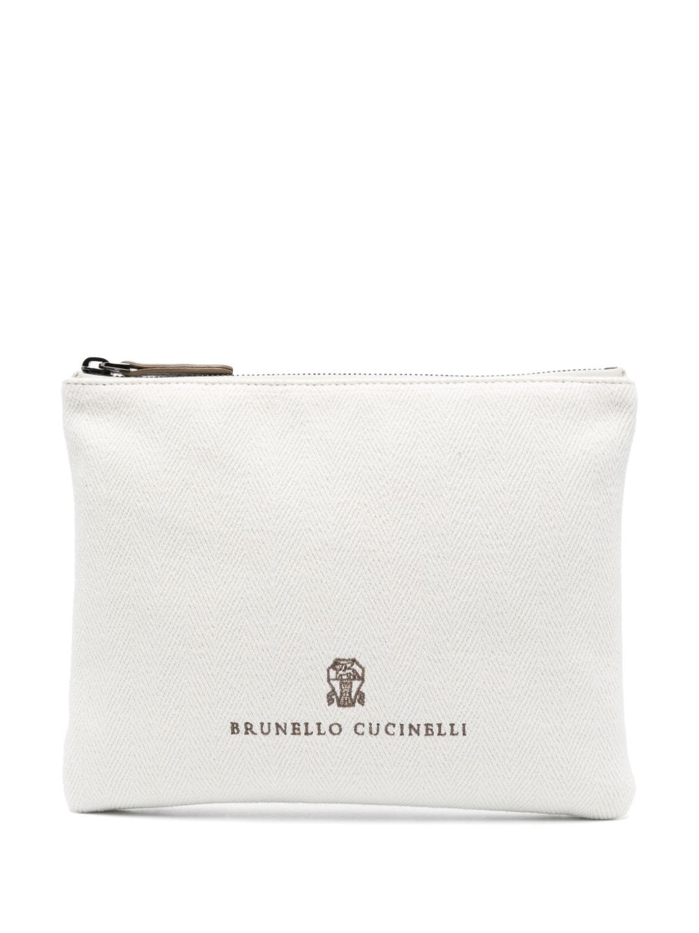 logo-embroidered clutch bag Highlights - White - Top zip fastening - Full lining - Embroidered motif - This piece comes complete with a protective dust bag. Made in Italy Composition Outer: Cotton 66%, Linen/Flax 34% Calf Leather 100% SIZE & FIT Model measurements Height 5 ft 11 in(1.8 m) Bust/Chest 32.28 in(82 cm) Hips 36.61 in(93 cm) Waist 24.01 in(61 cm) Measurement DEPTH 0.78 in(2 cm) HEIGHT 7.48 in(19 cm) WIDTH 9.84 in(25 cm)