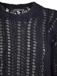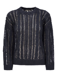 long-sleeve open-work sweater Highlights - Blue - Open-work knit - Crew neck - Dropped shoulder Made in Italy Composition Jute 55%, Cotton 35%, Polyamide 10% Washing instructions Read Manufacturer Guidelines