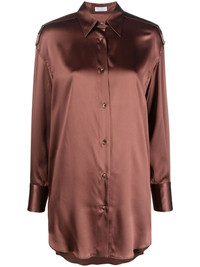 Monili chain detail shirt Defined by the iconic Monili chain detail, Brunello Cucinelli presents this shirt. Crafted from silk in a chocolate brown hue, this piece features epaulettes on the shoulders that are embellished with the signature Monili element. Highlights - Brown - Silk blend - Classic collar - Front button fastening - Epaulettes - Signature monili chain detail - Curved hem - Long sleeves Made in Italy Composition Eco Brass 100%, Silk 96%, Spandex/Elastane 4% SIZE & FIT Model measurements Height 5 ft 10 in(1.77 m) Bust/Chest 32.67 in(83 cm) Hips 35.43 in(90 cm) Waist 23.62 in(60 cm) FittingInformation This piece fits true to size. We recommend you get your regular size Cut for a loose fit Made with a lightweight stretch fabric Washing instructions Dry Clean Only