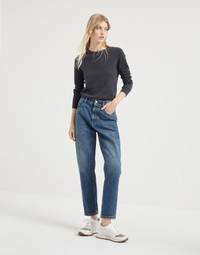 The iconic embellishment of the Brunello Cucinelli collections enriches the essential style of the pure cashmere crew-neck sweater. Shiny monili embroidery at the back of the neck adds a precious touch of sparkle. The garment offers regular proportions in both the bust and down the sleeves. MATERIALS The noble cashmere fiber is characterized by an extreme fineness and also for its precious insulating qualities which guarantee warmth, providing coverage and lightness when worn. DETAILS Crew-neck Regular shoulder Regular sleeve Plain stitch Nickel-free monili decoration 100% CASHMERE