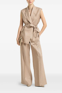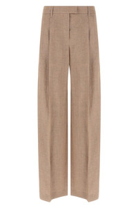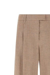 cod. MH526P8884C920 'Loose Pleated' pants in Sparkling linen twill, pince, expanded pleat, flared wide leg, hook and front button zip closure, back Monile detail. Color: Pink Size & Fit: true to size fit Composition: 92% li, 4% pa, 4% pm Made in: Italy