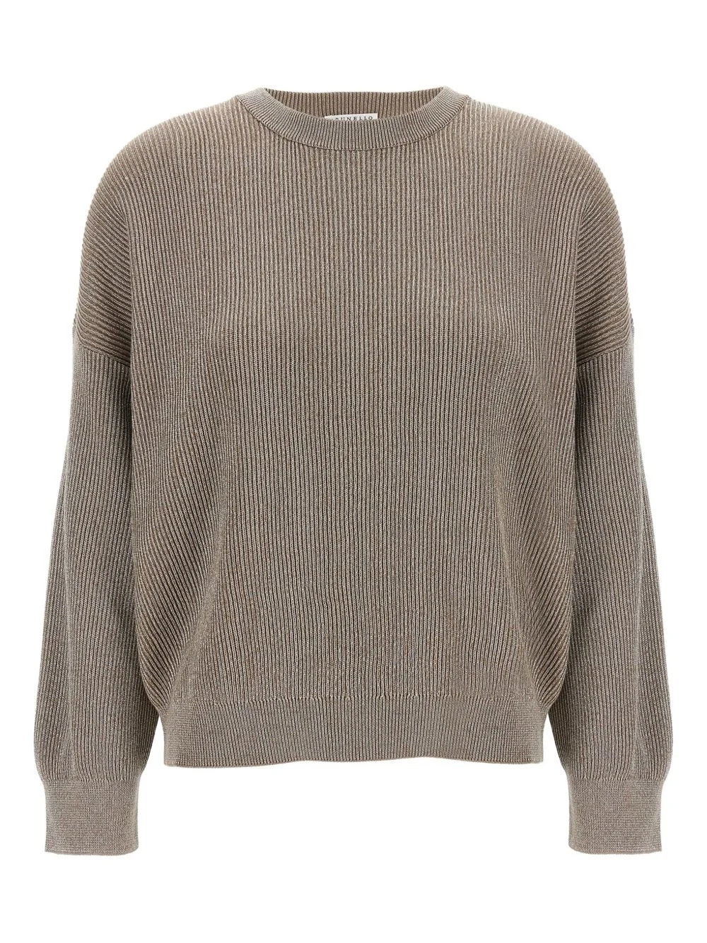 ribbed-knit sweater Highlights - Beige - Crew neck - Drop shoulder seams - Long sleeves - Ribbed cuffs and hem Made in Italy Composition Cotton 72%, Viscose 22%, Polyamide 6% Washing instructions Read Manufacturer Guidelines