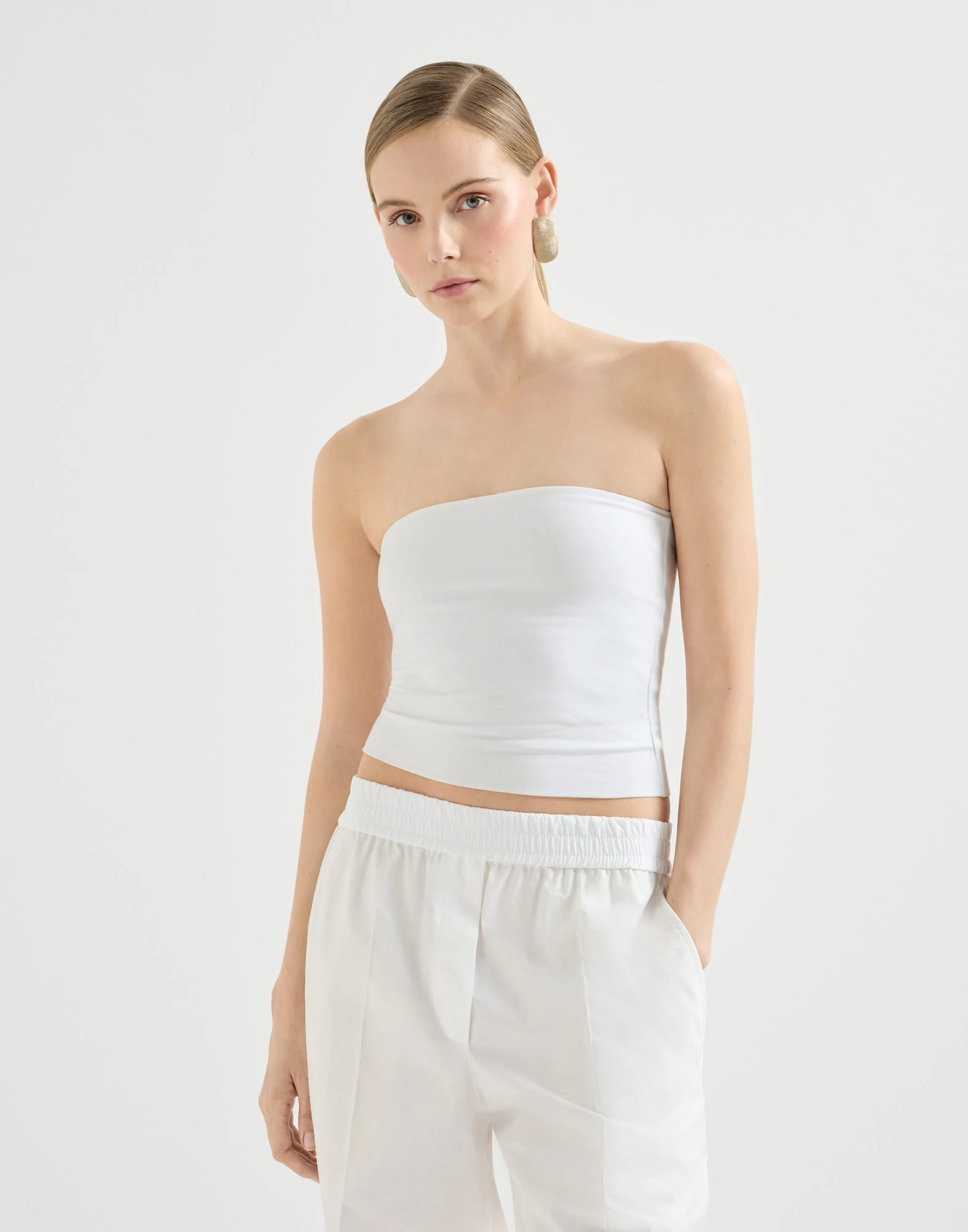 Essential style and extraordinary comfort define this stretch cotton jersey bandeau top. The garment features a slightly "cropped" fit and bare shoulders to highlight the feminine silhouette. The top can be worn as a comfortable undergarment. MATERIALS A small percentage of spandex makes the lightweight and soft cotton jersey comfortable and pleasant to wear. DETAILS Off-the-shoulder style Stretch pull-on top 93% COTTON, 7% ELASTANE