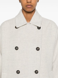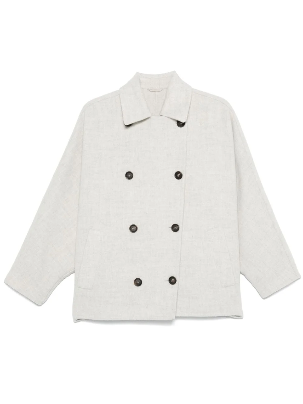 handcrafted peacoat Highlights - White - Virgin wool-cashmere blend - Brushed finish - Handcrafted effect - Melange effect - Double-breasted button fastening - Spread collar - Drop shoulder - Long raglan sleeves - Two side welt pockets - Unlined - Asymmetric hem Made in Italy Composition Outer: Virgin Wool 90%, Cashmere 10% Lining: Acetate 74%, Silk 26% SIZE & FIT Model measurements Height 5 ft 10 in(1.77 m) Bust/Chest 33.07 in(84 cm) Hips 37 in(94 cm) Waist 24.8 in(63 cm) FittingInformation Designed to be unstructured, offering a loose fit throughout Made from a midweight non-stretch fabric