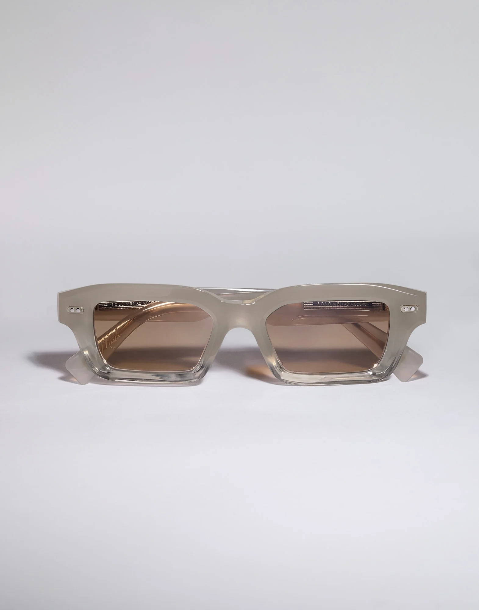 Strong lines and a sculptural design define the bold spirit of the Marla sunglasses, handmade in Japan. The acetate frame with a rectangular silhouette is worked with a hollowing technique that gives volume to the structure while maintaining its lightweight feel. Lasered pins on the front reinterpret the refinement of the iconic lines of the heraldic coat of arms, while the temples feature precious micro-details, such as the engraved logos on the core, flush-set pins and custom hinges. The frame is personalized with the sleek laser-engraved wording "Marla" on the inside of the temple. The frame is part of the "Iconic Meridian" line, inspired by a symbol deeply rooted in the history and philosophy of Brunello Cucinelli. The heraldic logo is reimagined through distinctive details, craftsmanship and design elements that tie the different styles together. Light itself shapes geometric forms at their fullest intensity, like a sundial sculpted by the sun. MATERIALS The frame is made from acetate, a classic thin and lightweight eyewear material. Crystal sun lenses provide UV protection. DETAILS Frame shape: rectangular Acetate frame Size: 50 mm (1.97"); Bridge: 19 mm (0.75"); Temple: 145 mm (5.71") Crystal lenses, base 4.25 UV protection lens coating RX-able style Non-adjustable nose pads Universal fit Handmade in Japan Exclusive packaging The frame's technical code (indicated on the inside of the temple) is: 0BC4019S ACETATE, CRYSTAL