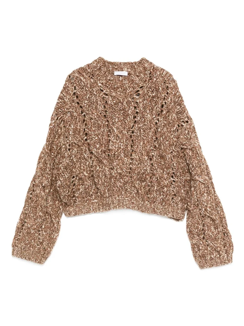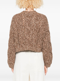 cable-knit balloon-sleeve sweater Highlights - Brown - Cable knit - Balloon sleeves - Round neck Made in Italy Composition Lambs Wool 39%, Cashmere 32%, Polyamide 15%, Polyester 9%, Mohair 5% SIZE & FIT Model measurements Height 5 ft 9 in(1.75 m) Bust/Chest 34.64 in(88 cm) Hips 36.61 in(93 cm) Waist 26.37 in(67 cm) Washing instructions Hand Wash