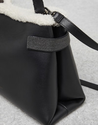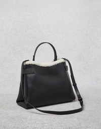The natural softness of Matte calfskin pairs with the soft touch of shearling to reinterpret, with a modern twist, the classic squared lines of this bag. The essential and geometric shapes are toned down by a shearling insert along the edges that introduces a Folk-inspired detail. At the sides, two monili embroidery adjustable inserts allow to expand the bag size and add a precious, sparkling effect. An adjustable and removable shoulder-strap complements the accessory with a versatile detail. MATERIALS Matte calfskin delivers a smooth, soft and even texture. The leather’s matte appearance brings out the colors of the season with a rich and intense effect. DETAILS Magnetic snap closure Adjustable and detachable shoulder strap Handle Suede lining Internal pocket with zip closure Side buttons for adjustment Nickel-free monili decoration Bag is 33 cm long, 13 cm wide and 25 cm high REAL LEATHER