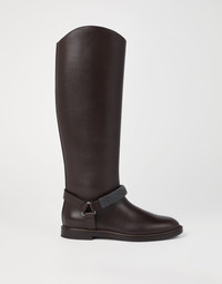 Precious embellishments enrich the essential style of these matte calfskin tall boots. The leather’s smooth, even appearance is paired with an embroidery of fine shiny monili rows that recreate the effect of a ribbed texture, adding a feminine sparkle. MATERIALS Matte calfskin delivers a smooth, soft and even texture. The leather’s matte appearance brings out the colors of the season with a rich and intense effect. DETAILS Internal side zip closure Leather lining Nickel-free monili decoration REAL LEATHER