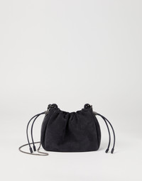 The velvety look of suede and feminine embellishments define the classic feel of this mini Bucket Mellow bag. The leather’s velvety hand perfectly complements the bag’s minimalist lines, which are gathered by the drawstring closure. Four rows of precious monili are joined together to create the shoulder strap, illuminating the accessory with radiant reflections in true Brunello Cucinelli style. MATERIALS The refined suede has an elegant, sophisticated appearance characterized by its unmistakable velvety, slightly uneven texture. DETAILS Drawstring closure Shoulder strap Suede lining 1 slot for cards and business cards All metal parts are Nickel-free Bag is 26 cm (10.24") long, 6.5 cm (2.56") wide, and 14 cm (5.51") high REAL LEATHER