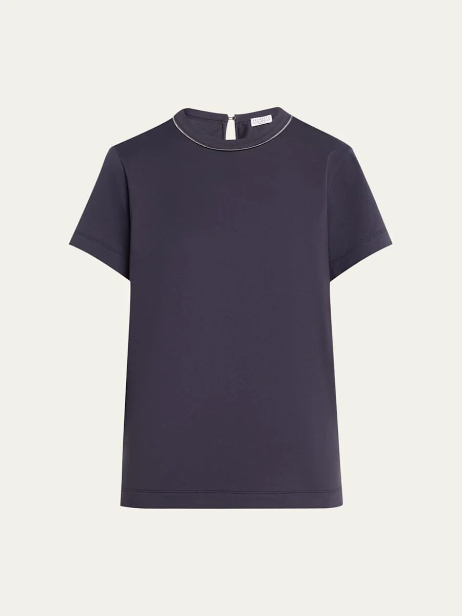 Metallic Seams Cotton Stretch Short-Sleeve T-Shirt