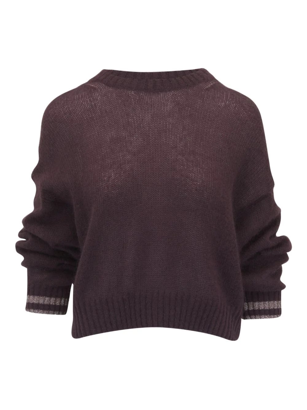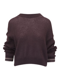 metallic-trimmed cashmere sweater Highlights - Chocolate brown - Cashmere - Round neck - Long sleeves - Metallic trim - Cropped hem Made in Italy Composition Mohair 50%, Nylon 36%, Wool 14% Washing instructions Read Manufacturer Guidelines