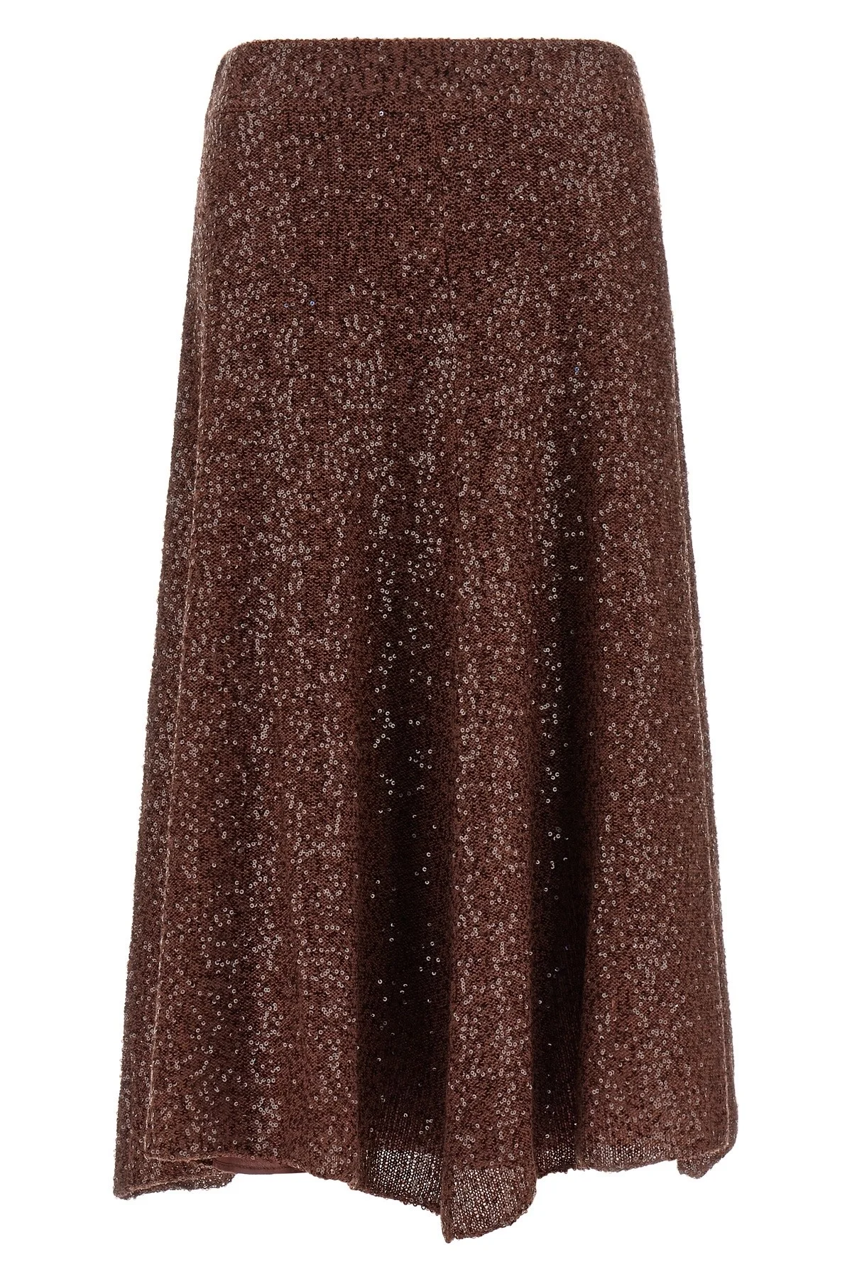 cod. MDJ547689C9092 Midi skirt in linen blend knit with all-over micro sequins, flared cut, soft hem, silk underskirt, elastic waistband. Color: Pink Size & Fit: True to size fit Composition: 60% li, 28% ws, 12% se Made in: Italy