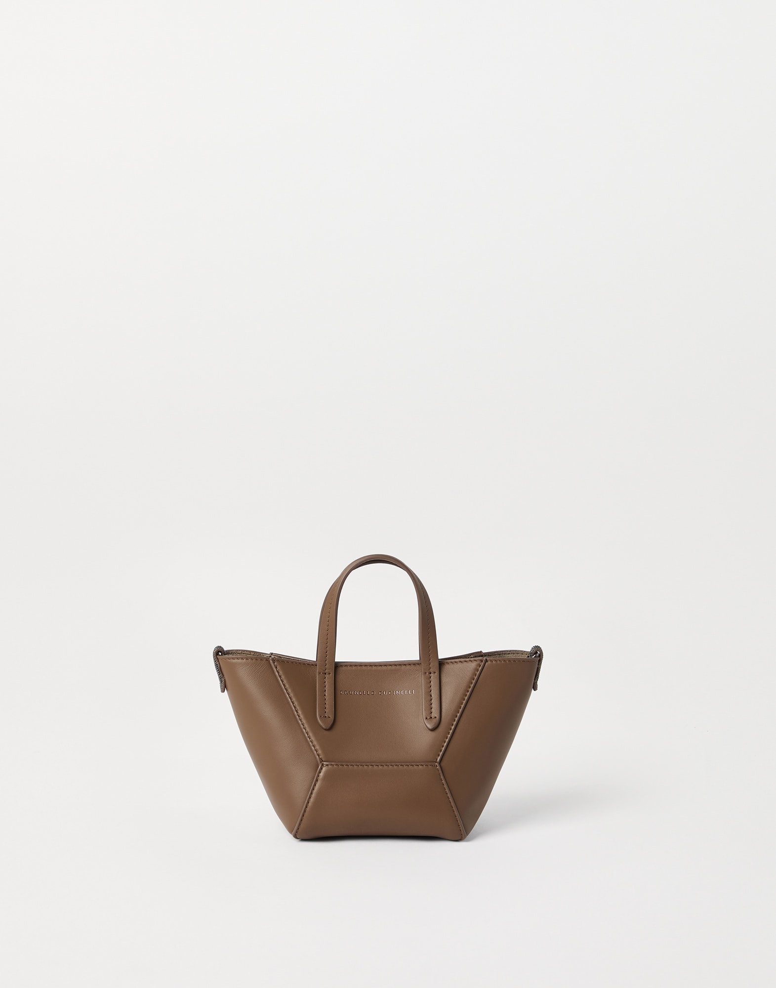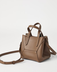 This new mini BC Duo bag reinterprets the iconic "everyday bag" design of the Brunello Cucinelli collections. Soft calfskin enhances the season's colors and highlights the eye-catching seams that emphasize the bag's square, minimalist lines, offered in a smaller size for a very elegant, casual feel. If fastened, the internal ties on the sides allow the shape of the bag to change, making it more compact. The practical magnetic closure and the removable shoulder strap complete the style, while two monili embroideries add a feminine sparkling note. MATERIALS The refined calfskin showcases a smooth, soft and even texture. The leather’s matte appearance brings out the season’s colors with an intense, rich effect. DETAILS Magnetic snap closure Adjustable and detachable shoulder strap Double handle 1 slot for cards and business cards Suede lining Nickel-free monili decoration Bag is 25 cm (9.84") long, 10 cm (3.94") wide, and 14 cm (5.51") high 100% REAL LEATHER