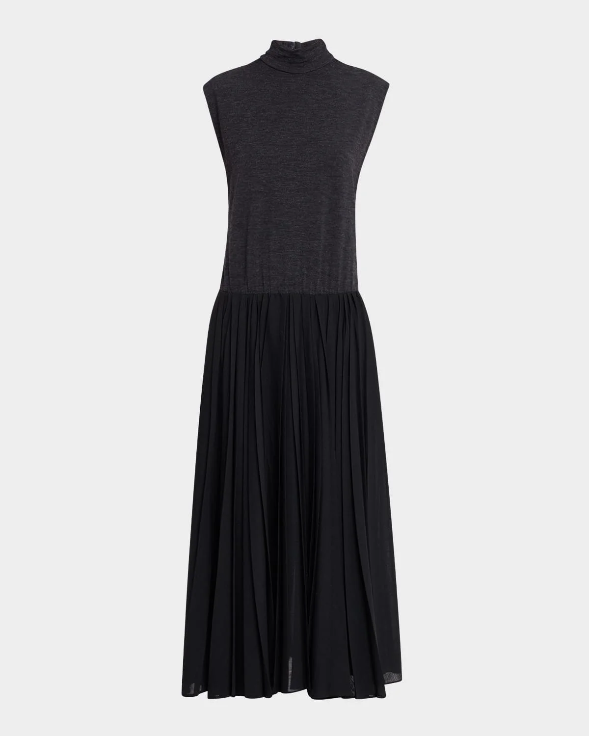 Mixed-Media Pleated Gauze Midi T-Shirt Dress
