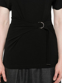 tie-front short-sleeve top Highlights - Black - Short sleeves - Tie fastening - Draped design Made in Italy Composition Eco Brass 100%, Acetate 74%, Wool 48%, Viscose 48%, Silk 26%, Elastane 4% SIZE & FIT Model measurements Height 5 ft 9 in(1.75 m) Bust/Chest 34.64 in(88 cm) Hips 36.61 in(93 cm) Waist 26.37 in(67 cm) Washing instructions Hand Wash