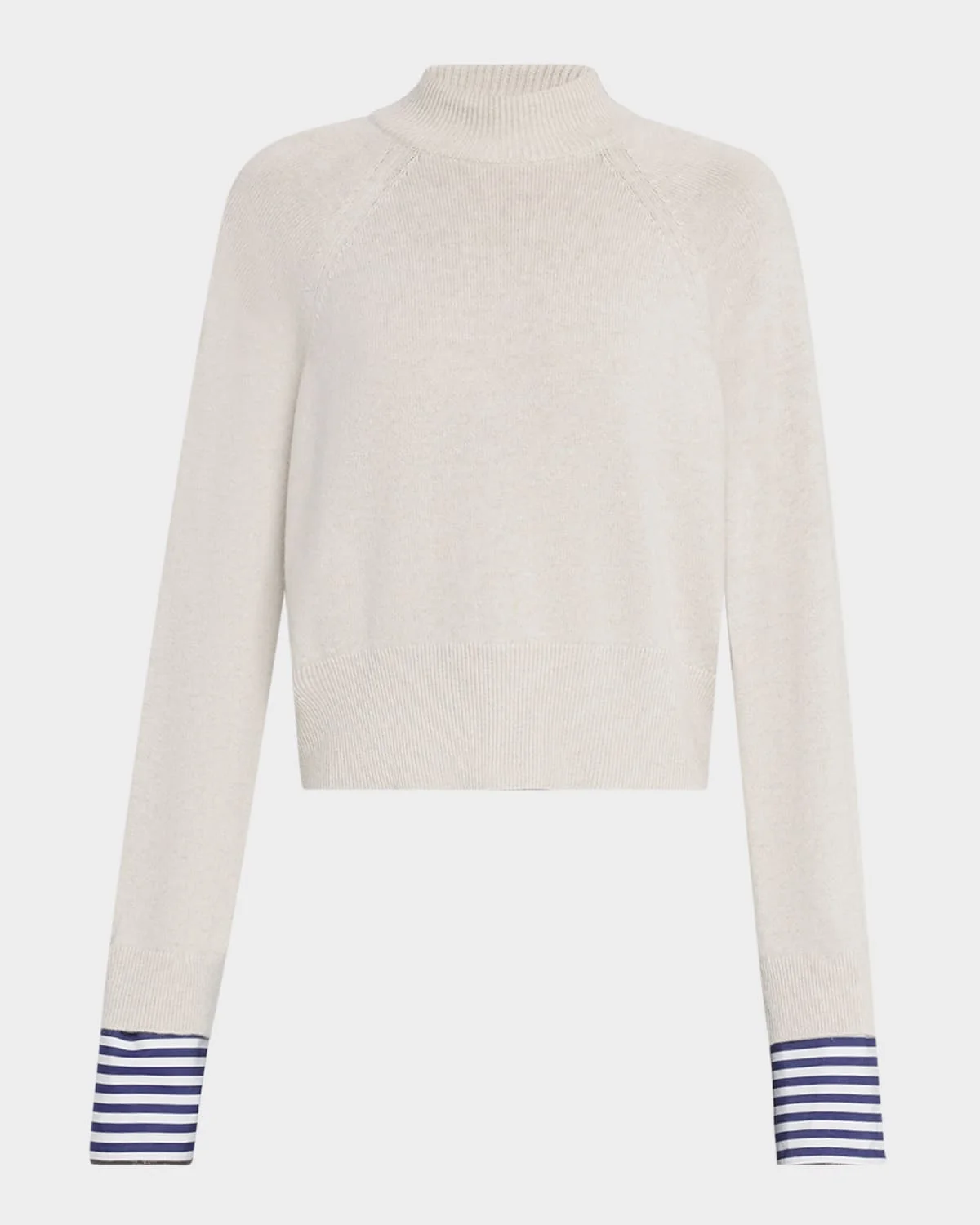 Mock-Neck Striped-Cuff Cashmere Knit Sweater