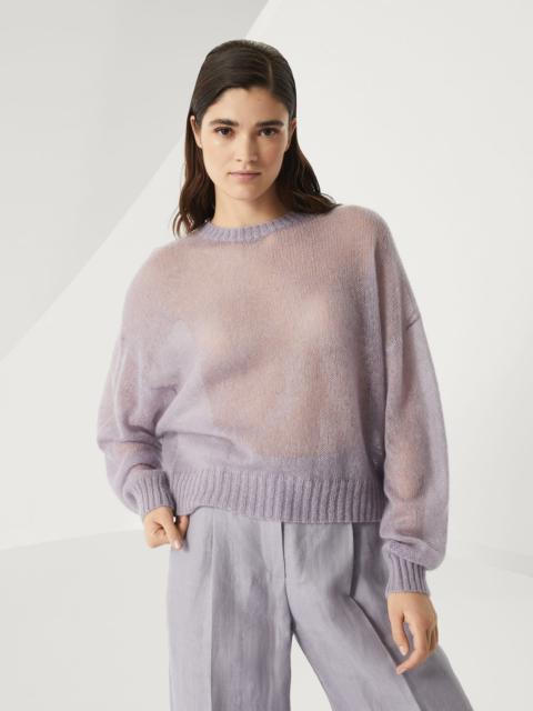 Refined natural fibers are reinterpreted with a spring-inspired feel to create this mohair and wool sweater. The garment features an extraordinary lightness provided by the fine knit, giving the design an ethereal look. The silhouette showcases dropped shoulders and slightly wide sleeves, while the use of shiny monili gives the piece a feminine sparkle in true Brunello Cucinelli style. MATERIALS The mohair and wool yarn offers a lightweight, cozy texture with a slightly airy look. Adding a synthetic fiber helps to maintain the fabric’s structure and guarantee comfort. DETAILS Rib knit crewneck Drop shoulder Rib knit cuffs and bottom band Special workmanship Nickel-free monili decoration 50% MOHAIR, 36% NYLON, 14% WOOL