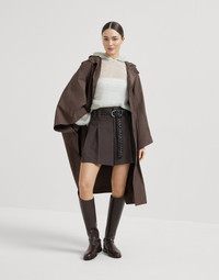 Casual inspiration is enriched with Brunello Cucinelli’s refined materials and sophisticated details in this new mohair, cotton and wool dazzling mesh knit sweatshirt. Classic netting is reinterpreted in a precious way thanks to the presence of sequins that spread delicate sparkling reflections on the entire surface. The fit offers relaxed, comfortable proportions, completed by the hood in the same material. MATERIALS The lightness, comfort and softness of the mohair, cotton and wool fibers are paired with the dazzling mesh knitting that reinterprets netting in a precious way thanks to the small sequins embedded into the yarn. DETAILS Hood Drop shoulder Wide sleeve Net knitting 42% MOHAIR, 30% NYLON, 12% COTTON, 11% WOOL, 5% POLYESTER