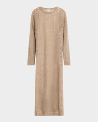 Mohair Diamante Pailette Open-Knit Maxi Sweater Dress