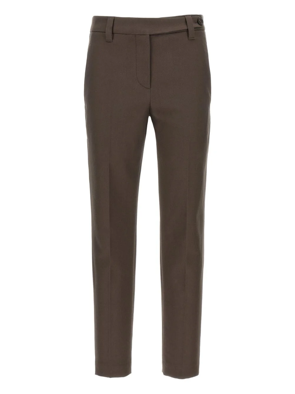 tailored trousers Highlights - Brown - Button detail - Belt loops - Two side pockets - Rear welt pockets Made in Italy Composition Cotton 97%, Elastane 3% Washing instructions Read Manufacturer Guidelines
