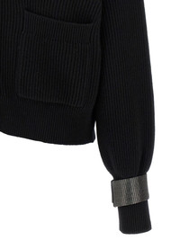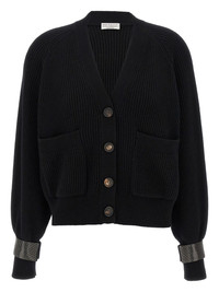 ribbed jewel-cuff cardigan Highlights - Black - V-neck - Button front fastening - Patch pockets - English rib knit - Removable jewel cuffs Made in Italy Composition Cashmere 100% Washing instructions Read Manufacturer Guidelines
