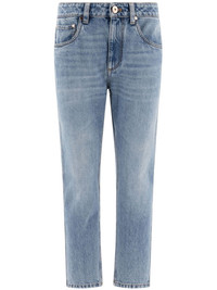 tapered jeans Highlights - Blue - Front button and zip fastening - Belt loops - Classic five pockets - Logo patch to the rear Made in Italy Composition Cotton 100%