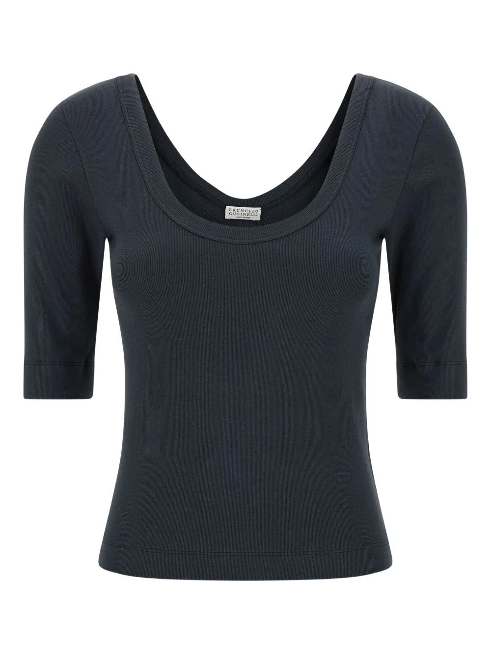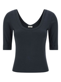 round-neck T-shirt Highlights - Blue - Round neck - Three-quarter sleeves - Logo detail Made in Italy Composition Cotton 94%, Elastane 6% Washing instructions Hand Wash