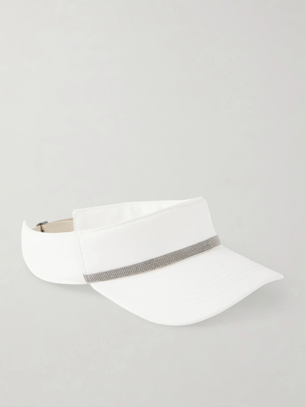 Brunello Cucinelli's tennis cap will bring Italian elegance to your courtside wardrobe. It's been made in Italy from canvas with leather trims and embellished with monili beads that bring a gorgeous glow.