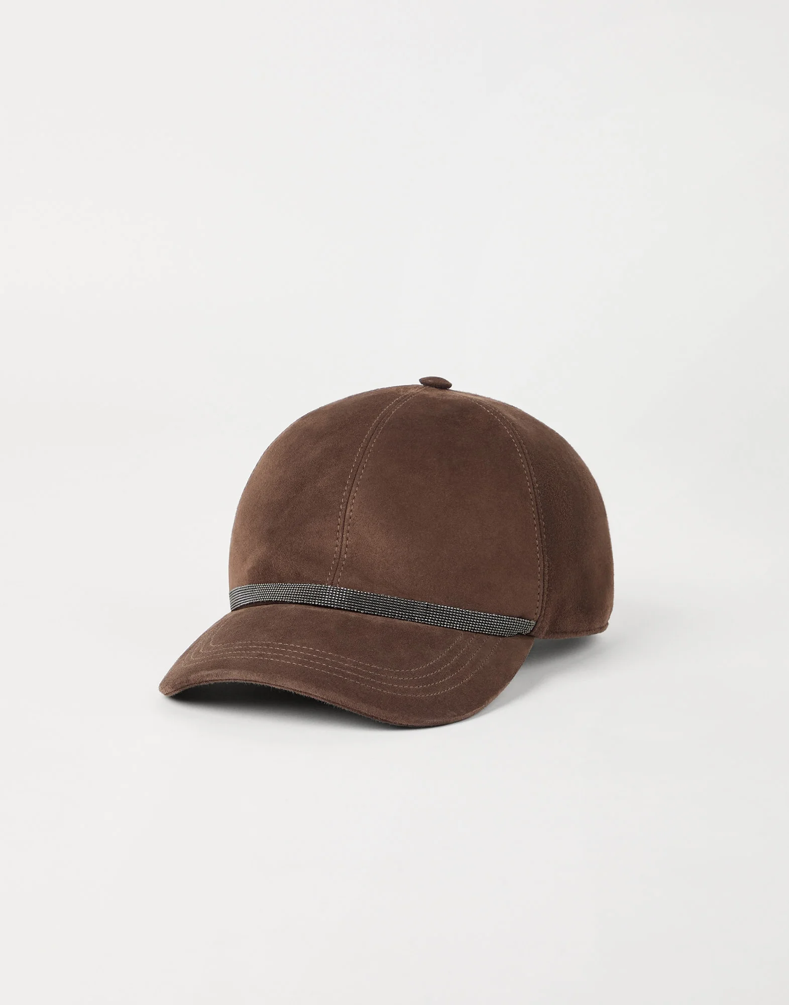The iconic element of the Brunello Cucinelli collections elevates the casual feel of this Baseball cap. Made of soft suede, the accessory showcases a precious embroidery of rows of shiny monili, adding a delicate, feminine touch. MATERIALS Refined suede is a thin leather with a soft, velvety hand. DETAILS Reinforced brim Adjustable leather strap with buckle Lined Nickel-free monili decoration REAL LEATHER