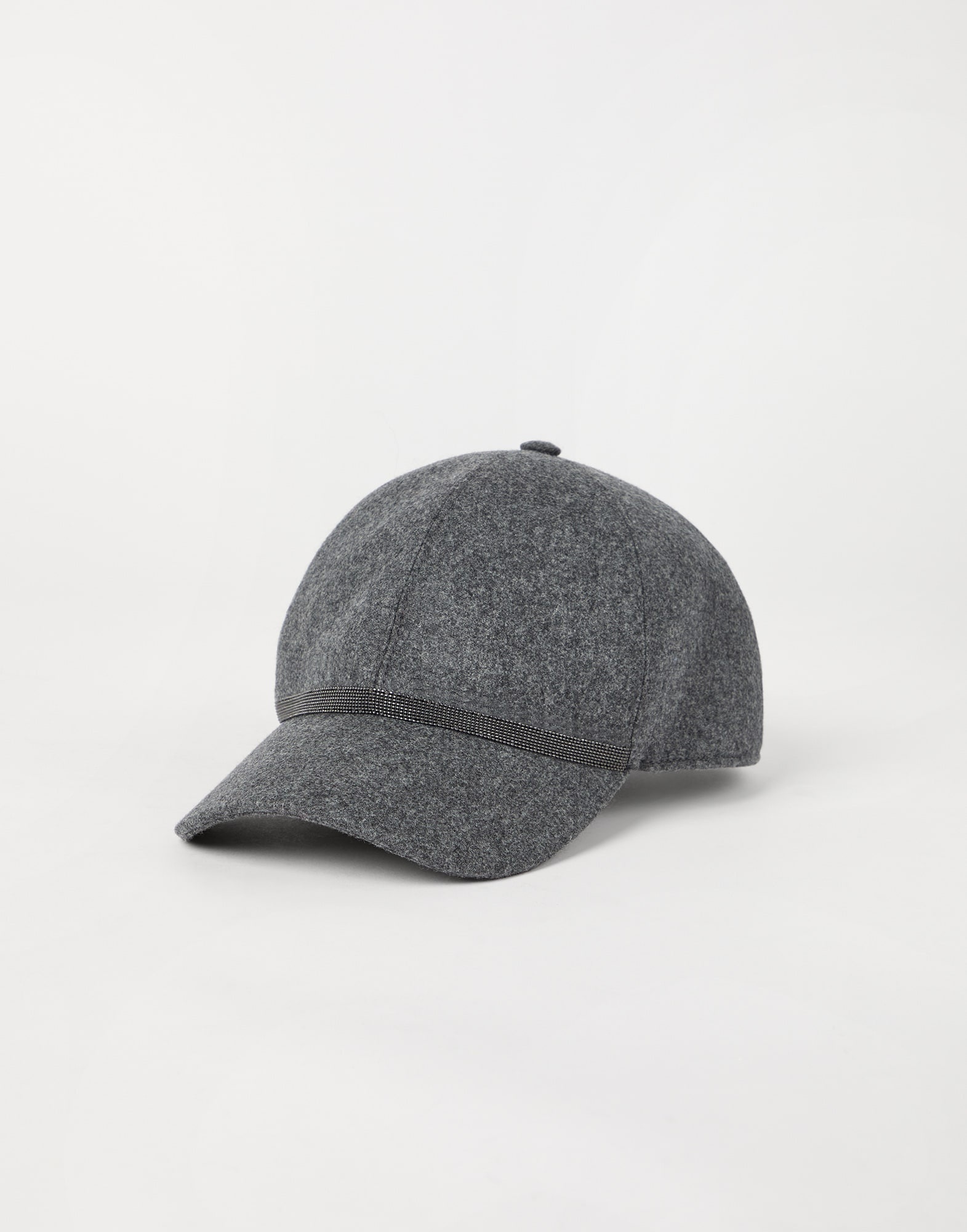 Virgin wool and cashmere flannel baseball cap with shiny band