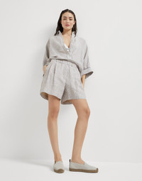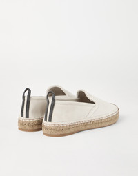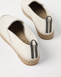 Precious suede updates the timeless style of these espadrilles, adding a soft, elegant touch to the footwear’s casual feel. A precious embroidery of rows of shiny monili provides a shimmering sparkle in true Brunello Cucinelli style. The rope bottom, combined with the lightweight rubber tread, ensures the right amount of comfort. MATERIALS Compact with a soft, velvety texture, the refined suede wraps the foot in a pleasant way. DETAILS Suede lining Rope sole Lightweight rubber outsole Nickel-free monili decoration REAL LEATHER