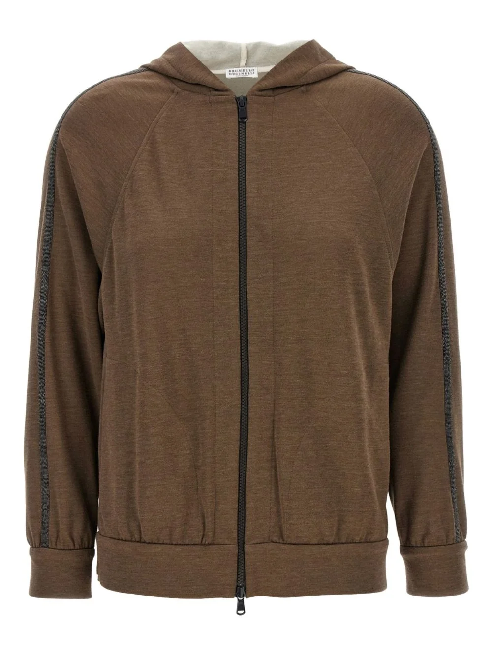 Monili-chain zip-up hoodie Highlights - Brown - Two-way zip fastening - Hooded design - Ribbed cuffs and hem Made in Italy Composition Cotton 67%, Silk 31%, Polyamide 2% Washing instructions Read Manufacturer Guidelines
