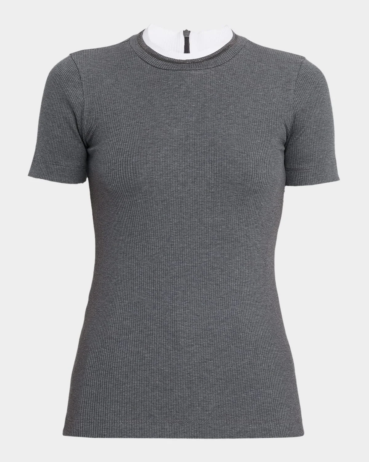 - Brunello Cucinelli T-shirt crafted from soft, stretch cotton embellished with a subtle strand of monili embroidery, introduces a touch of luminous sophistication. - Crew neckline - Short sleeves - Slim fit - Pullover style - Cotton/elastane - Made in Italy