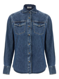 denim shirt Highlights - Blue - Front button fastening - Two chest flap pockets - Long sleeves - Buttoned cuffs Made in Italy Composition Cotton 100% Washing instructions Read Manufacturer Guidelines
