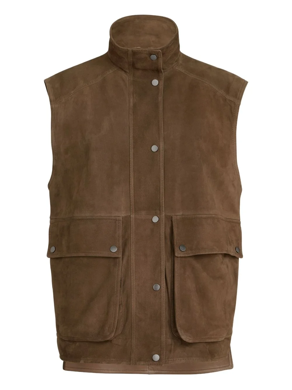 monili-detail front-pocket vest Highlights - Brown - Monili detail - Snap fastening - High neck - Front pockets Made in Italy Composition Outer: Calf Leather 100% Washing instructions Read Manufacturer Guidelines