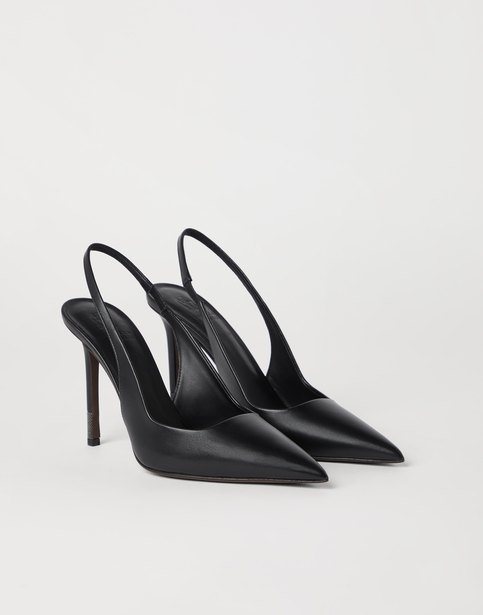 Refined materials and feminine details define the style of these new heels. The footwear’s tapered, essential lines are enriched by the special texture of soft nappa. The bottom of the heel is enriched with a shiny monili embroidery, the iconic embellishment of the Brunello Cucinelli collections. MATERIALS Nappa is characterized by a smooth, ultra-soft texture. The fine natural grain enhances the season’s colors with an intense, even effect. A leather lining ensures the footwear’s comfort. DETAILS Leather lining 10 cm (3,94") heel Non-slip rubber insert Nickel-free monili decoration 100% REAL LEATHER