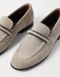 Suede penny loafers with shiny detail