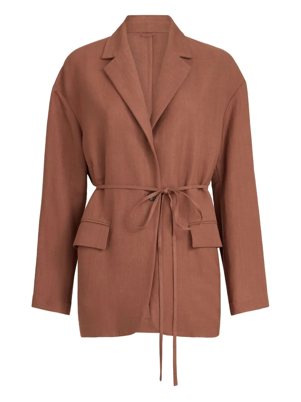 monili-embellishment blazer Highlights - Orange - Monili detail - Front pockets - Tie fastening - Long sleeves Made in Italy Composition Viscose 72%, Linen/Flax 28% Washing instructions Read Manufacturer Guidelines