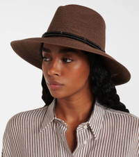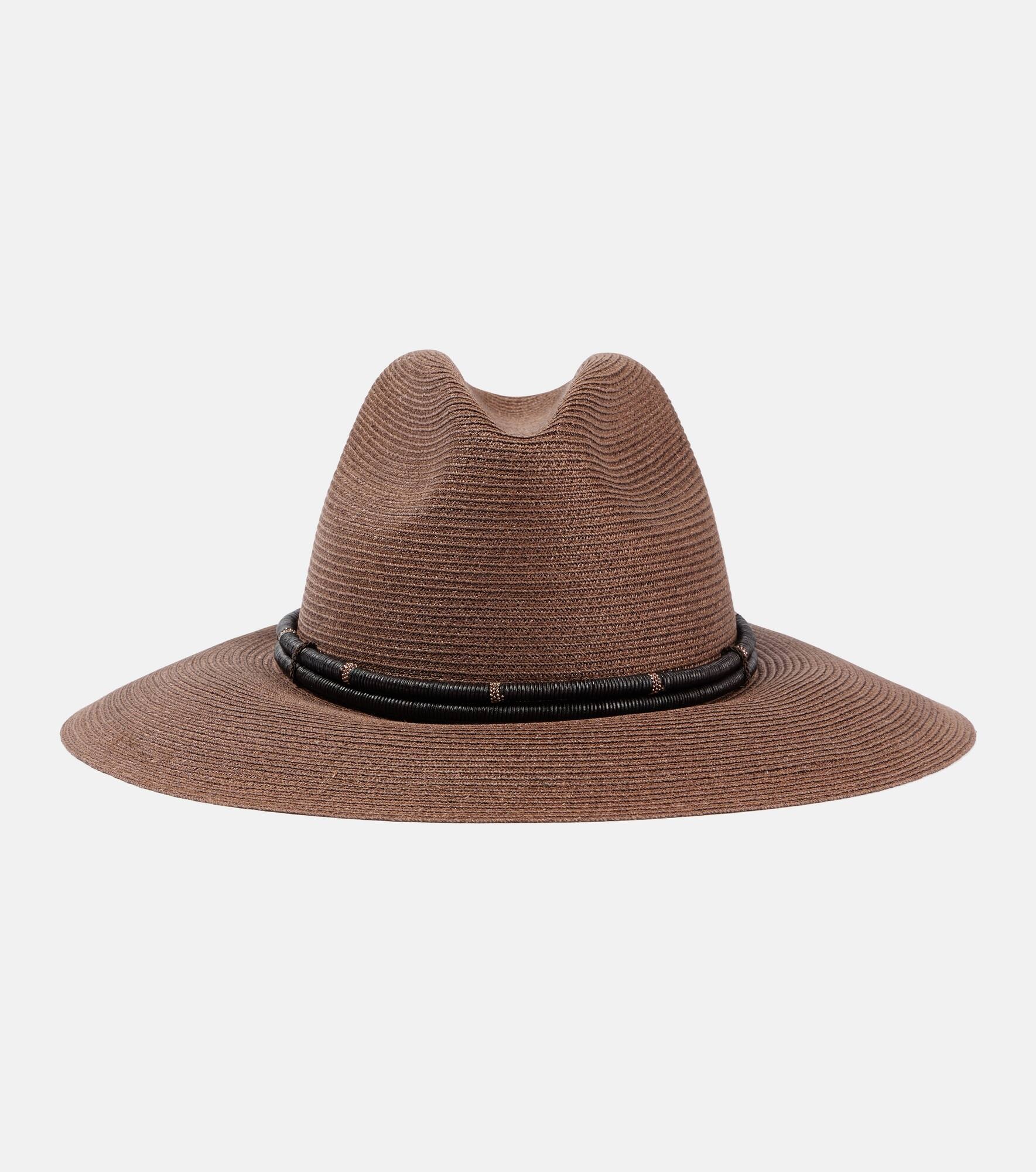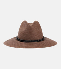 A Brunello Cucinelli signature, monili beading is made from nickel-free brass that's faceted to create a sparkling effect and hand-applied to each item. The signature beading tops the leather band on this classic fedora. Product Details - Material: 76% hemp, 18% cotton, 6% nylon - Care instructions: do not wash - Made in Italy - Designer color name: SEMI DI LINO - Lining: 60% cotton, 40% acetate - Item number: P01013160 Size & Fit - Width of brim 8cm-3"