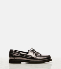 Monili metallic leather boat shoes