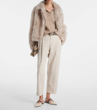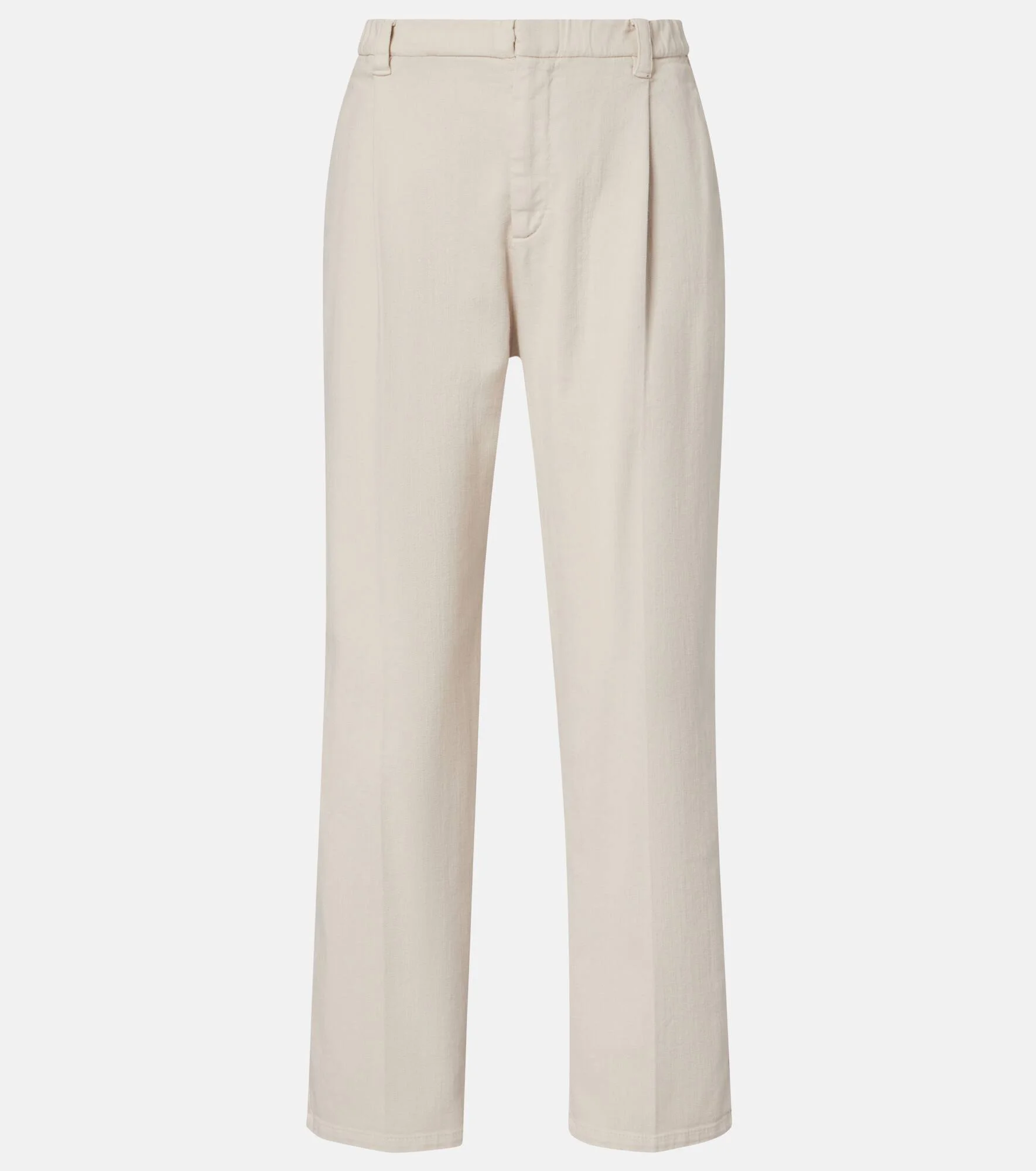 Brunello Cucinelli's designs are created in Solomeo, a medieval hamlet whose art and traditions are woven into the house's every fiber. These straight jeans feature a mid-rise silhouette with the brand's signature Monili bead detailing. Product Details - Material: 96% cotton, 4% elastane - Care instructions: machine wash at 30 degrees - Made in Italy - Designer color name: Warm White - Item color: beige - Lining: 100% cotton - Contains non-textile parts of animal origin - Insert: 100% brass - Closure: zip, hook, and button fastening - Elasticated waistband - Belt loops - Pockets: slant pockets, back pockets - Single pleat - Item number: P01091801 Size & Fit - True to size - Elasticated waist - Non-stretchy fabric - Straight leg - Mid-rise - Height of model is 175cm-69" and wears a size IT 40