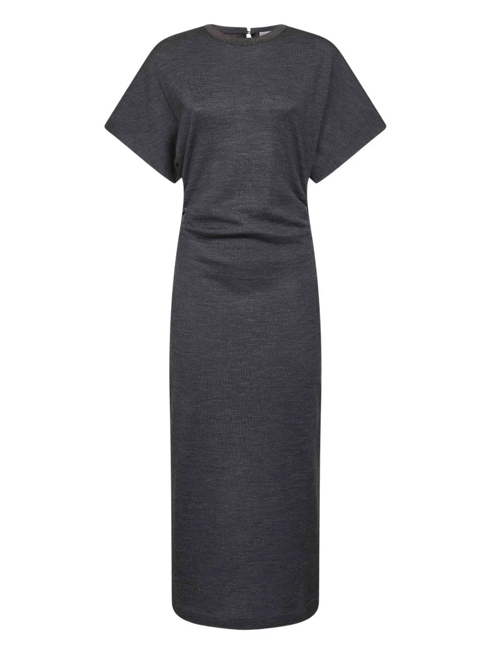 Monili-chain detail midi dress Highlights - Grey - Signature monili chain detail - Crew neck - Short sleeves Made in Italy Composition Virgin Wool 100% Washing instructions Read Manufacturer Guidelines
