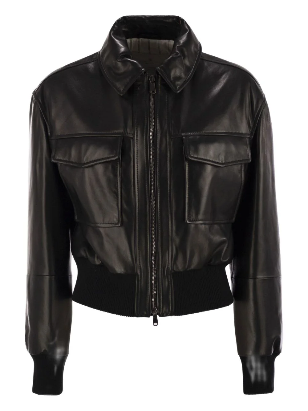 pocket leather jacket Highlights - Black - Padded - Patch pockets - Knitted trims - Zip fastening - Long sleeve Made in Italy Composition Outer: Leather 100%, Cashmere 100%, Eco Brass 100% Lining: Silk 57%, Polyester 43% Washing instructions Specialist Cleaning