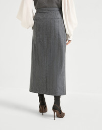 Virgin wool flannel sartorial wrap skirt with shiny Chalk Stripe embroidery