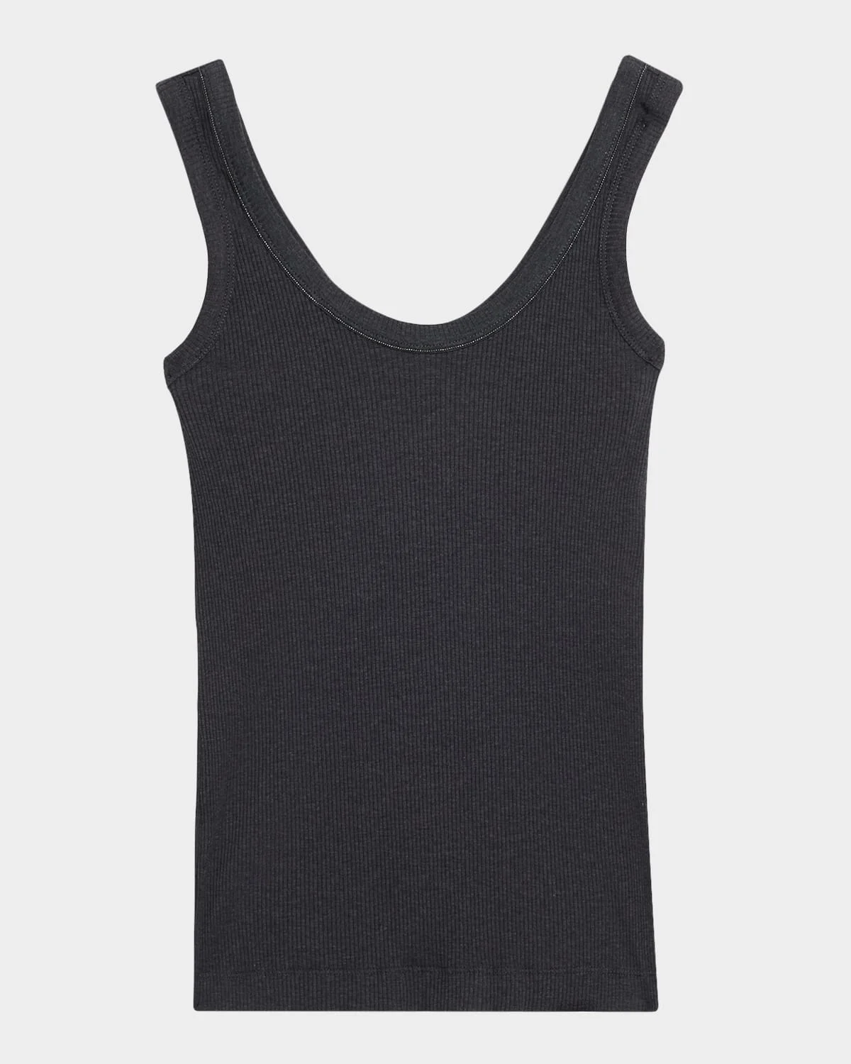 - This ribbed stretch cotton tank top from Brunello Cucinelli blends casual ease with refined shimmer, delicately embellished with the house’s signature monili trim - Scoop neckline - Sleeveless - Fitted - Pullover style - Cotton/elastane - Made in Italy