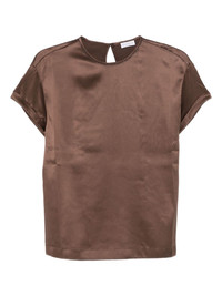 crystal-embellishment blouse Highlights - Brown - Short sleeves - Crystal embellishment - Straight hem Made in Italy Composition Eco Brass 100%, Silk 96%, Elastane 4% SIZE & FIT Model measurements Height 5 ft 9 in(1.75 m) Bust/Chest 32.67 in(83 cm) Hips 36.22 in(92 cm) Waist 24.8 in(63 cm) Washing instructions Hand Wash