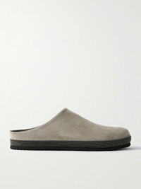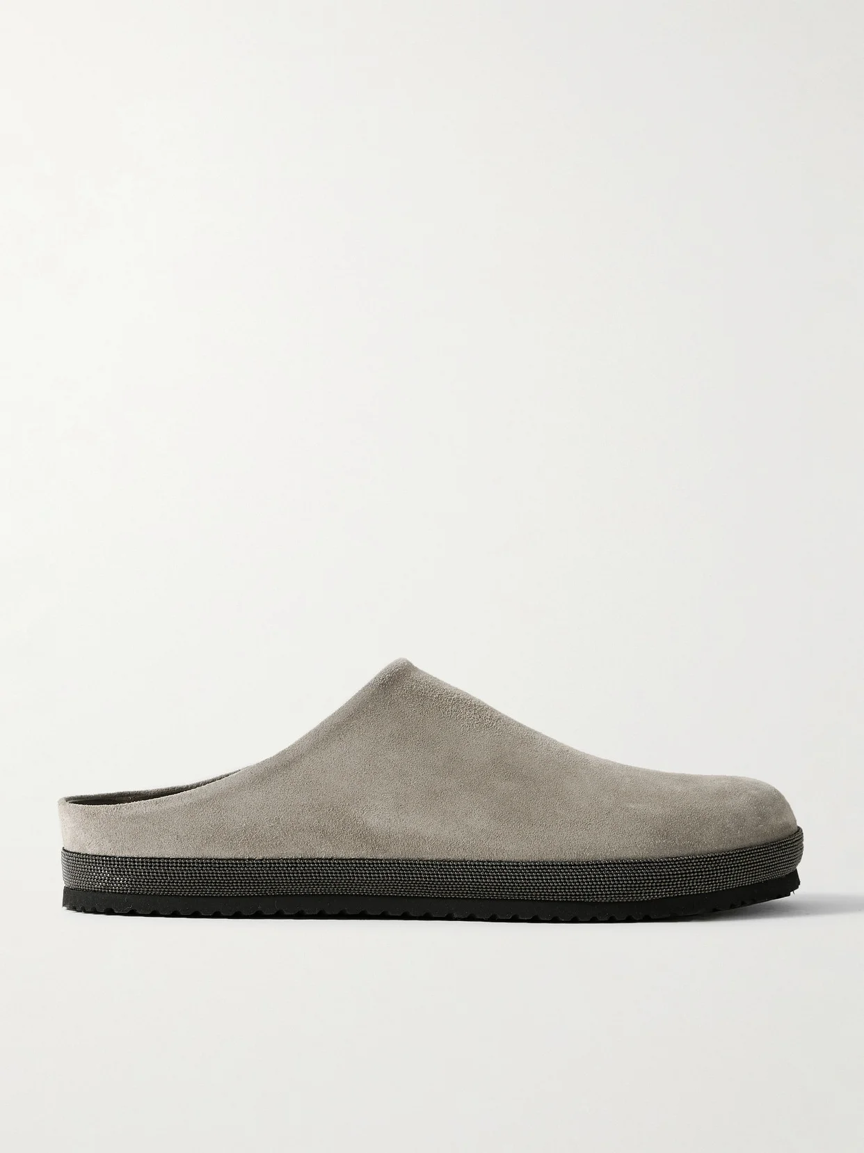 Brunello Cucinelli's mules have been crafted in Solomeo, the 14th-century Italian village that houses the brand's headquarters and workshops. They're made from suede in versatile gray and have rounded toes and chunky soles surrounded by rows of signature Monili beads.