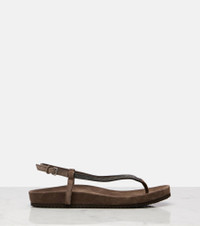 A Brunello Cucinelli signature, monili beading is made from nickel-free brass that's faceted to create a sparkling effect and hand-applied to each item. These suede sandals feature the house motif on the thong straps. Product Details - Upper: leather (suede) - Lining: leather - Sole: leather insole, rubber sole - Toe shape: almond open toe - Made in Italy - Includes: dust bags, shoe box - Designer color name: Medium Brown - Item color: brown - Closure: buckle fastening - Item number: P01058341 Size & Fit - True to size - European sizes - 3cm-1" platform (size EU 38) - 4cm-1.5" wedge heel (size EU 38)